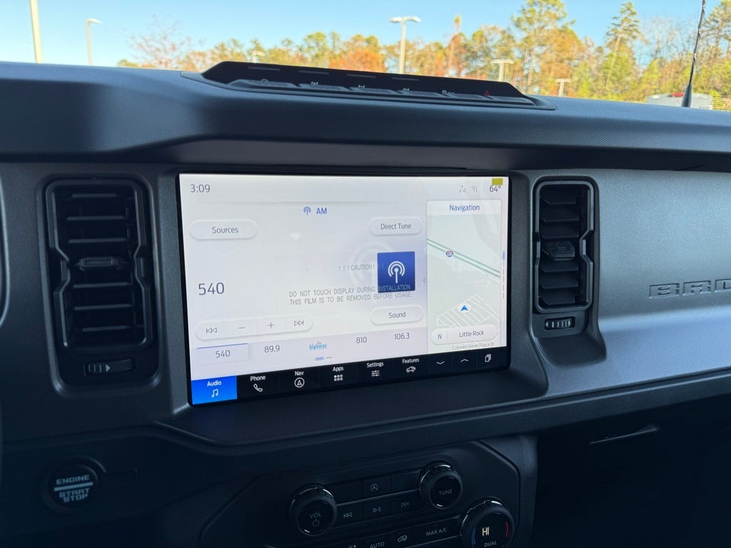Equipment Group 332A Mid Package (2-Door Intelligent Access w/Lock/Unlock, Ambient Footwell Lighting, Connected Navigation, Dr & Pass Illuminated Sliding Visor Vanity Mirrors, Dual Smart Charging USB Ports, Dual-Zone Electronic Automatic Temperature Control, Power Outlet - Back Side of Center Floor Console, and Rear Parking Sensors), Bronco Badlands, 4D Sport Utility, 4WD, Green Metallic, Black Onyx, 4.46 Axle Ratio, AM/FM Stereo, BLIS Blind Spot Information System, Brake assist, Electronic Stability Control, Front fog lights, Fully automatic headlights, Hard Top Sound Deadening Headliner, Heated door mirrors, Heated steering wheel, Illuminated entry, Lane-Keeping System, Marine Grade Vinyl Heated Bucket Seats, Overhead console, Power door mirrors, Pre-Collision Assist w/Automatic Emergency Braking, Rear-View Camera, Security system, SiriusXM w/360L, SYNC 4, Wheels: 17 Carbonized Gray-Painted Aluminum, 4-Wheel Disc Brakes, 7 Speakers, ABS brakes, Air Conditioning, Alloy wheels, Auto High-Beam Headlamps, Auto-dimming Rear-View mirror, Body Color-Painted Hard Top, Compass, Delay-off headlights, Driver door bin, Driver vanity mirror, Dual front impact airbags, Dual front side impact airbags, Emergency communication system: 911 Assist, Front anti-roll bar, Front Center Armrest, Front License Plate Bracket, Front reading lights, Front wheel independent suspension, Integrated roll-over protection, Leather Shift Knob, Low tire pressure warning, Occupant sensing airbag, Outside temperature display, Overhead airbag, Panic alarm, Passenger door bin, Passenger vanity mirror, Power steering, Power windows, Radio data system, Rear-Window Defroster & Washer, Remote keyless entry, Speed control, Split folding rear seat, Steering wheel mounted audio controls, Tachometer, Telescoping steering wheel, Tilt steering wheel, Traction control, Trip computer, Variably intermittent wipers, and Voltmeter.