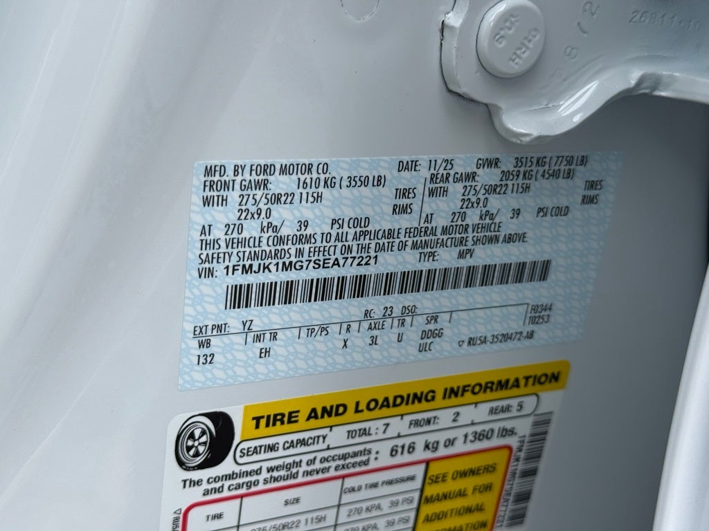 Driver's Package (Continuous Control Damping Suspension and Radio: B&O Unleashed Sound System by Bang & Olufsen), Equipment Group 600A Standard Package (2nd Row Power-Folding Captain's Chairs), Stealth Appearance Package (Black Belt Molding, Black Expedition Lettering On Hood, Black Headlamp Bezel w/Ebony Trim Applique, Black Platinum Badge On Tailgate, Black Roof Rails, Carbon Black Front Bumper/Fascia, Engine Sound Enhancer, Rear Side Windows Laminated Glass, and Signature Grille Lighting), Stealth Performance Package (High Flow Exhaust System, Red Brake Calipers, and Wheels: 22 Magnetite Painted Aluminum), Expedition Max Platinum, 4D Sport Utility, 4WD, Oxford White, Black Onyx Leather, 4-Wheel Disc Brakes, Adjustable pedals, AM/FM radio: SiriusXM with 360L, Apple CarPlay/Android Auto, Automatic temperature control, Four wheel independent suspension, Front dual zone A/C, Fully automatic headlights, Heated & Ventilated Leather Front Captain's Chairs, Heated rear seats, Heated steering wheel, Illuminated entry, Memory seat, Navigation System, Overhead console, Pedal memory, Power moonroof: Vista Roof, Rear air conditioning, Rear window defroster, Reclining 3rd row seat, Security system, Spoiler, Turn signal indicator mirrors, 3.73 Axle Ratio, 3rd row seats: split-bench, ABS brakes, Air Conditioning, Alloy wheels, Auto-dimming door mirrors, Auto-dimming Rear-View mirror, Brake assist, Bumpers: body-color, Compass, Delay-off headlights, Driver door bin, Driver vanity mirror, Dual front impact airbags, Dual front side impact airbags, Electronic Stability Control, Emergency communication system: 911 Assist, Front anti-roll bar, Front Center Armrest, Front License Plate Bracket, Front reading lights, Garage door transmitter, Genuine wood dashboard insert, Genuine wood door panel insert, Heated door mirrors, Leather steering wheel, Low tire pressure warning, Occupant sensing airbag, Outside temperature display, Overhead airbag, Panic alarm, Passenger door bin, Passenger vanity mirror, Power door mirrors, Power driver seat, Power passenger seat, Power steering, Power windows, Radio data system, Rain sensing wipers, Rear anti-roll bar, Rear reading lights, Rear window wiper, Remote keyless entry, Speed control, Speed-sensing steering, Speed-Sensitive Wipers, Split folding rear seat, Steering wheel memory, Steering wheel mounted audio controls, Tachometer, Telescoping steering wheel, Tilt steering wheel, Traction control, Trip computer, Variably intermittent wipers, and Voltmeter.