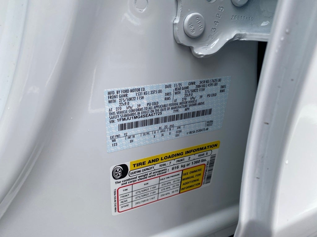 Connectivity Package (One-Time Purchase), Driver's Package (Radio: B&O Unleashed Sound System by Bang & Olufsen, SiriusXM w/360L, and Continuous Control Damping Suspension), Equipment Group 600A Standard Package (2nd Row Power-Folding Captain's Chairs), Stealth Appearance Package (Black Belt Molding, Black Roof Rails, Carbon Black Front Bumper/Fascia, Engine Sound Enhancer, Rear Side Windows Laminated Glass, Signature Grille Lighting, Black Expedition Lettering On Hood, Black Headlamp Bezel w/Ebony Trim Applique, and Black Platinum Badge On Tailgate), Stealth Performance Package (High Flow Exhaust System, Red Brake Calipers, and Wheels: 22 Magnetite Painted Aluminum), Expedition Platinum, 4WD, Oxford White, Black Onyx Leather, 10 Speakers, Adjustable pedals, Apple CarPlay/Android Auto, Auto High-beam Headlights, Automatic temperature control, Black Headlamp Bezel w/Satin Trim Applique, BlueCruise Equipped (1-Year Plan), Brake assist, Electronic Stability Control, Exterior Parking Camera Rear, Four wheel independent suspension, Front dual zone A/C, Heated & Ventilated Leather Front Captain's Chairs, Heated door mirrors, Heated rear seats, Heated steering wheel, Illuminated entry, Memory seat, Navigation System, Overhead console, Pedal memory, Power moonroof: Vista Roof, Radio: B&O Sound System by Bang & Olufsen, Rear air conditioning, Reclining 3rd row seat, Remote keyless entry, Security system, Spoiler, Steering wheel memory, 3.73 Axle Ratio, 3rd row seats: split-bench, 4-Wheel Disc Brakes, ABS brakes, Air Conditioning, Alloy wheels, Auto-dimming door mirrors, Auto-dimming Rear-View mirror, Bumpers: body-color, Compass, Delay-off headlights, Driver door bin, Driver vanity mirror, Dual front impact airbags, Dual front side impact airbags, Emergency communication system: 911 Assist, Front anti-roll bar, Front Center Armrest, Front reading lights, Fully automatic headlights, Garage door transmitter, Genuine wood dashboard insert, Genuine wood door panel insert, Leather steering wheel, Low tire pressure warning, Occupant sensing airbag, Outside temperature display, Overhead airbag, Panic alarm, Passenger door bin, Passenger vanity mirror, Power door mirrors, Power driver seat, Power passenger seat, Power steering, Power windows, Radio data system, Rain sensing wipers, Rear anti-roll bar, Rear reading lights, Rear window defroster, Rear window wiper, Speed control, Speed-sensing steering, Speed-Sensitive Wipers, Split folding rear seat, Steering wheel mounted audio controls, Tachometer, Telescoping steering wheel, Tilt steering wheel, Traction co