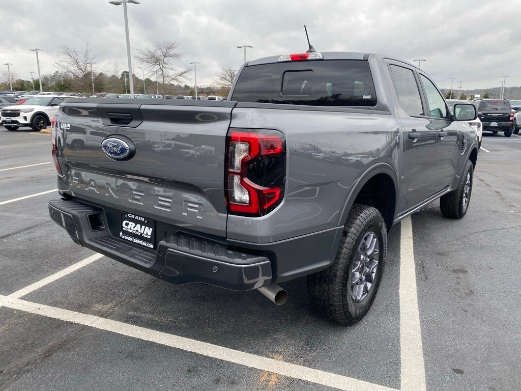 Equipment Group 301A High (12 Display in Center Stack, Cloth Front Heated Bucket Seats, Dual-Zone Electronic Climate Control (DEATC), and Power-Sliding Rear Window), Sport Appearance Package (Gray Painted Center Bar & Grille Surround, Gray Painted Front Fascia & Rear Bumper, and Sport Box Decal), Ranger XLT, 4D Crew Cab, 4WD, Gray Metallic, 3.73 Axle Ratio, 4-Wheel Disc Brakes, 6 Speakers, AM/FM Stereo, Auto High-beam Headlights, Brake assist, Electronic Stability Control, Front Center Armrest, Front fog lights, Illuminated entry, Navigation system: Connected Navigation, Overhead console, Rear step bumper, Rear window defroster, Remote keyless entry, Security system, SiriusXM Satellite Radio, Speed-sensing steering, SYNC 4A w/Connected Navigation, Tough Bed Spray-In Bedliner, Wheels: 17 Gray-Painted Aluminum, ABS brakes, Air Conditioning, Alloy wheels, Auto-dimming Rear-View mirror, Compass, Delay-off headlights, Driver door bin, Driver vanity mirror, Dual front impact airbags, Dual front side impact airbags, Emergency communication system: SYNC 4 911 Assist, Front anti-roll bar, Front License Plate Bracket, Front reading lights, Front wheel independent suspension, Internet access capable: FordPass Connect 4G, Leather Shift Knob, Low tire pressure warning, Occupant sensing airbag, Outside temperature display, Overhead airbag, Panic alarm, Passenger door bin, Passenger vanity mirror, Power door mirrors, Power steering, Power windows, Rear reading lights, Rear seat center armrest, Speed control, Steering wheel mounted audio controls, Telescoping steering wheel, Tilt steering wheel, Traction control, Trip computer, Variably intermittent wipers, and Voltmeter.