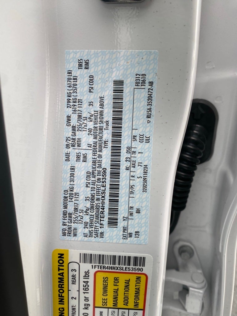 Equipment Group 301A High (12 Display in Center Stack, Cloth Front Heated Bucket Seats, Dual-Zone Electronic Climate Control (DEATC), and Power-Sliding Rear Window), Sport Appearance Package (Gray Painted Center Bar & Grille Surround, Gray Painted Front Fascia & Rear Bumper, and Sport Box Decal), Ranger XLT, 4D Crew Cab, 4WD, Oxford White, 3.73 Axle Ratio, 4-Wheel Disc Brakes, 6 Speakers, AM/FM Stereo, Auto High-beam Headlights, Brake assist, Electronic Stability Control, Front fog lights, Illuminated entry, Navigation system: Connected Navigation, Overhead console, Rear step bumper, Rear window defroster, Remote keyless entry, Security system, SiriusXM Satellite Radio, Speed-sensing steering, SYNC 4A w/Connected Navigation, Wheels: 17 Gray-Painted Aluminum, ABS brakes, Air Conditioning, Alloy wheels, Auto-dimming Rear-View mirror, Compass, Delay-off headlights, Driver door bin, Driver vanity mirror, Dual front impact airbags, Dual front side impact airbags, Emergency communication system: SYNC 4 911 Assist, Front anti-roll bar, Front Center Armrest, Front License Plate Bracket, Front reading lights, Front wheel independent suspension, Internet access capable: FordPass Connect 4G, Leather Shift Knob, Low tire pressure warning, Occupant sensing airbag, Outside temperature display, Overhead airbag, Panic alarm, Passenger door bin, Passenger vanity mirror, Power door mirrors, Power steering, Power windows, Rear reading lights, Rear seat center armrest, Speed control, Steering wheel mounted audio controls, Telescoping steering wheel, Tilt steering wheel, Traction control, Trip computer, Variably intermittent wipers, and Voltmeter.