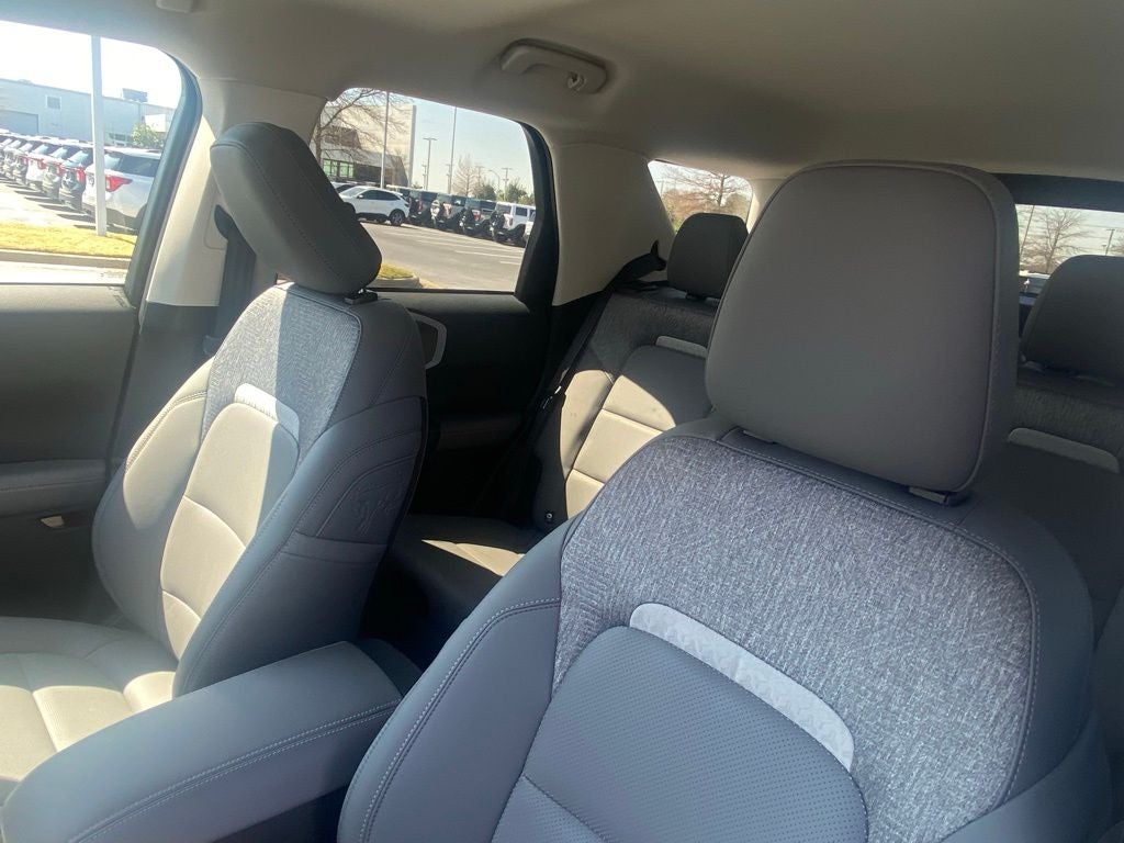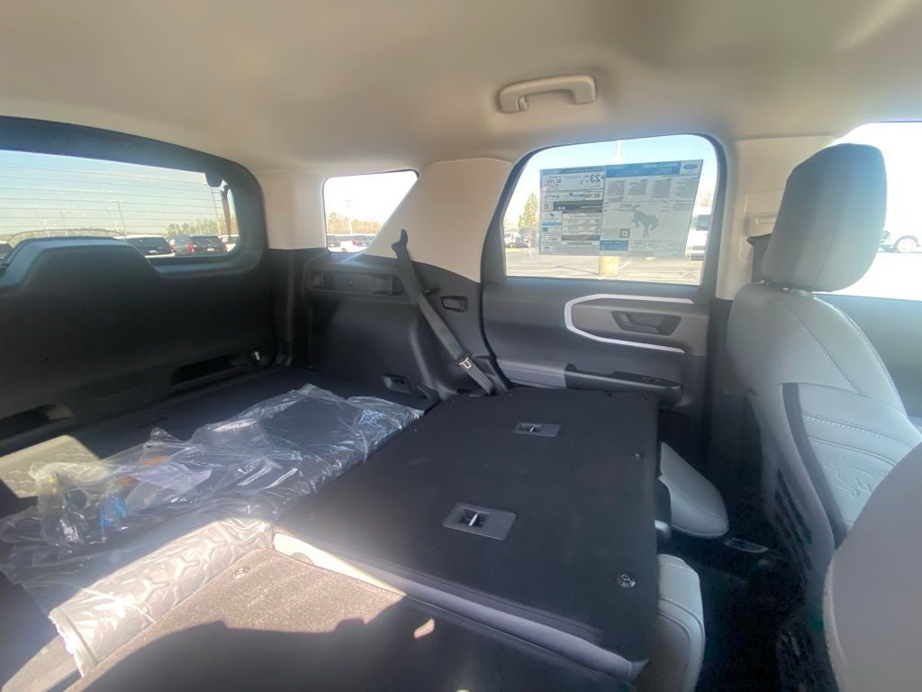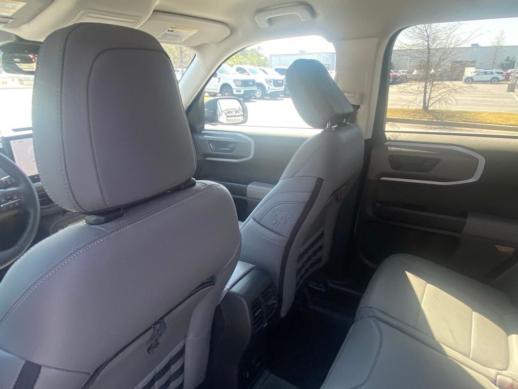 Equipment Group 400A Standard Package (AM/FM Stereo, Leather-Trimmed Heated Front Sport Contour Bucket Seats, SiriusXM with 360L, SYNC 4 with Enhanced Voice Recognition, and Wheels: 17 Matte Black-Painted Aluminum), Ford Connectivity Package (1-Year Included), Internet access capable: 5G Modem - Ford Connectivity Package, Bronco Sport Badlands, 4D Sport Utility, 8-Speed Automatic, 4WD, White Metallic, Gray Leather, 6 Speakers, Apple CarPlay/Android Auto, Auto High-beam Headlights, Automatic temperature control, Brake assist, Electronic Stability Control, Exterior Parking Camera Rear, Four wheel independent suspension, Front Center Armrest, Front fog lights, Heated door mirrors, Heated front seats, Heated steering wheel, Illuminated entry, Memory seat, Overhead console, Rear window defroster, Remote keyless entry, Security system, Speed-sensing steering, Steering wheel mounted audio controls, 4-Wheel Disc Brakes, ABS brakes, Air Conditioning, Alloy wheels, AM/FM radio: SiriusXM with 360L, Auto-dimming Rear-View mirror, Compass, Delay-off headlights, Driver door bin, Driver vanity mirror, Dual front impact airbags, Dual front side impact airbags, Emergency communication system: SYNC 4 911 Assist, Front anti-roll bar, Front License Plate Bracket, Front reading lights, Fully automatic headlights, Knee airbag, Low tire pressure warning, Occupant sensing airbag, Outside temperature display, Overhead airbag, Panic alarm, Passenger door bin, Passenger vanity mirror, Power door mirrors, Power driver seat, Power passenger seat, Power steering, Power windows, Radio data system, Rear anti-roll bar, Rear reading lights, Rear seat center armrest, Rear window wiper, Speed control, Speed-Sensitive Wipers, Split folding rear seat, Tachometer, Telescoping steering wheel, Tilt steering wheel, Traction control, Trip computer, and Variably intermittent wipers.
