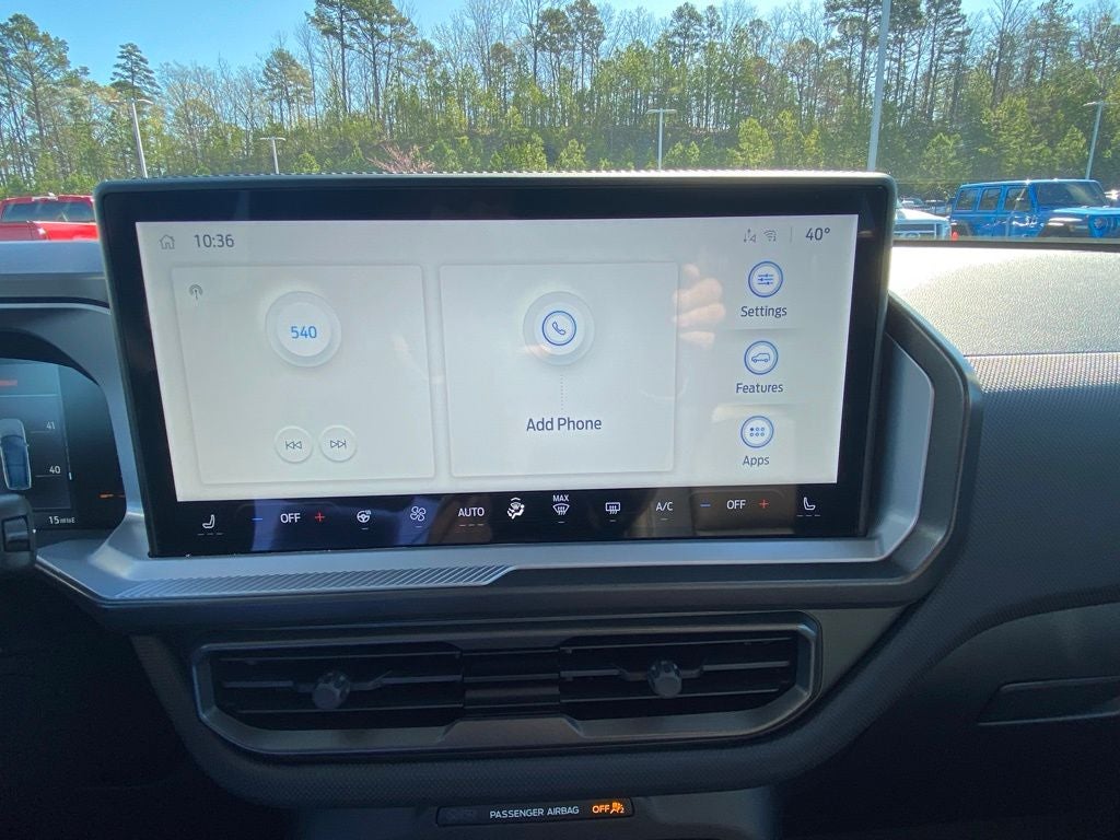 Equipment Group 300A Standard Package (AM/FM Stereo, Front Driver/Passenger Seat Back Map Pockets, SiriusXM with 360L, SYNC 4 with Enhanced Voice Recognition, and Wheels: 18 Ebony Black), Ford Connectivity Package (1-Year Included), Internet access capable: 5G Modem - Ford Connectivity Package, 4-Wheel Disc Brakes, 6 Speakers, ABS brakes, Air Conditioning, Alloy wheels, AM/FM radio: SiriusXM with 360L, Apple CarPlay/Android Auto, Auto High-beam Headlights, Auto-dimming Rear-View mirror, Automatic temperature control, Brake assist, Compass, Delay-off headlights, Driver door bin, Driver vanity mirror, Dual front impact airbags, Dual front side impact airbags, Electronic Stability Control, Emergency communication system: SYNC 4 911 Assist, Exterior Parking Camera Rear, Four wheel independent suspension, Front anti-roll bar, Front Bucket Seats, Front Center Armrest, Front dual zone A/C, Front fog lights, Front License Plate Bracket, Front reading lights, Fully automatic headlights, Heated door mirrors, Heated front seats, Heated steering wheel, Illuminated entry, Knee airbag, Low tire pressure warning, Memory seat, Occupant sensing airbag, Outside temperature display, Overhead airbag, Overhead console, Panic alarm, Passenger door bin, Passenger vanity mirror, Power door mirrors, Power driver seat, Power passenger seat, Power steering, Power windows, Radio data system, Rear anti-roll bar, Rear Parking Sensors, Rear reading lights, Rear seat center armrest, Rear window defroster, Rear window wiper, Remote keyless entry, Security system, Speed control, Speed-sensing steering, Speed-Sensitive Wipers, Split folding rear seat, Steering wheel mounted audio controls, Tachometer, Telescoping steering wheel, Tilt steering wheel, Traction control, Trip computer, and Variably intermittent wipers.