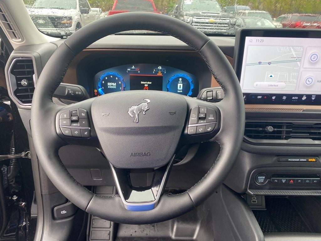 Class II Trailer Tow Package with Trailer Sway Control, Equipment Group 300A Standard Package (AM/FM Stereo, Front Driver/Passenger Seat Back Map Pockets, SiriusXM with 360L, SYNC 4 with Enhanced Voice Recognition, and Wheels: 18 Ebony Black), Ford Connectivity Package (1-Year Included), Internet access capable: 5G Modem - Ford Connectivity Package, Outer Banks Tech Package+ (Connected Navigation (1-Year Included) and Radio: HD w/B&O Sound System by Bang & Olufsen), Sasquatch Outer Banks Package (12.3 Cluster Display, 2 Rear D-Ring Recovery Hooks, 2nd Row Carpeted Seatback, 400W Pro Power Onboard, Auxiliary Switches and Wiring, Front and Rear Black Bumpers with Steel Plates, Front Brush Guard with Integrated Recovery Hooks, High Clearance Fender Flares, HOSS 2.0 Off-Road Suspension, Rubberized Flooring, Trail Control with Trail One-Pedal Drive, and Wheels: 17 Ebony Black-Painted Aluminum), 360-Degree Camera with Trail View, 4-Wheel Disc Brakes, 6 Speakers, ABS brakes, Air Conditioning, Alloy wheels, AM/FM radio: SiriusXM with 360L, Apple CarPlay/Android Auto, Auto High-beam Headlights, Auto-dimming Rear-View mirror, Automatic temperature control, Brake assist, Compass, Delay-off headlights, Driver door bin, Driver vanity mirror, Dual front impact airbags, Dual front side impact airbags, Electronic Stability Control, Emergency communication system: SYNC 4 911 Assist, Exterior Parking Camera Rear, Four wheel independent suspension, Front anti-roll bar, Front Bucket Seats, Front Center Armrest, Front dual zone A/C, Front fog lights, Front License Plate Bracket, Front Parking Sensors, Front reading lights, Fully automatic headlights, Heated door mirrors, Heated front seats, Heated steering wheel, Illuminated entry, Knee airbag, Low tire pressure warning, Memory seat, Occupant sensing airbag, Outside temperature display, Overhead airbag, Overhead console, Panic alarm, Passenger door bin, Passenger vanity mirror, Power door mirrors, Power driver seat, Power passenger seat, Power steering, Power windows, Radio data system, Rear anti-roll bar, Rear Parking Sensors, Rear reading lights, Rear seat center armrest, Rear window defroster, Rear window wiper, Remote keyless entry, Reverse Brake Assist, Security system, Speed control, Speed-sensing steering, Speed-Sensitive Wipers, Split folding rear seat, Steering wheel mounted audio controls, Tachometer, Telescoping steering wheel, Tilt steering wheel, Traction control, Trip computer, and Variably intermittent wipers.