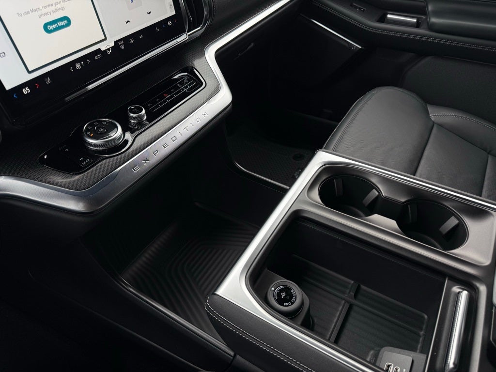 Equipment Group 600A Standard Package (2nd Row Power-Folding Captain's Chairs, 3.73 Axle Ratio, BlueCruise Equipped (90-Day Trial), Ford Digital Experience, Heated and Ventilated Leather Front Captain's Chairs, Radio: B&O Sound System by Bang and Olufsen, Wheels: 20 x 8.5 Ebony Bright Machined Aluminum, and Power Tilt/Telescopic Steering Wheel with Memory), Ford Connectivity Package (1-Year Included), Stealth Appearance Package (Black Belt Molding, Black Expedition Lettering on Hood, Black Headlamp Bezel with Ebony Trim Applique, Black Platinum Badge on Tailgate, Black Roof Rails, Carbon Black Front Bumper/Fascia, Rear Side Windows Laminated Glass, and Signature Grille Lighting), Expedition Max Platinum, 4WD, Oxford White, Black Onyx Leather, AM/FM radio: SiriusXM with 360L, Apple CarPlay/Android Auto, Auto High-beam Headlights, Automatic temperature control, Front Center Armrest, Front dual zone A/C, Heated door mirrors, Heated rear seats, Heated steering wheel, Illuminated entry, Intersection Assist, Memory seat, Navigation System, Power moonroof: Vista Roof, Rear air conditioning, Reclining 3rd row seat, Security system, Spoiler, Turn signal indicator mirrors, 3rd row seats: split-bench, 4-Wheel Disc Brakes, ABS brakes, Air Conditioning, Alloy wheels, Auto-dimming door mirrors, Auto-dimming Rear-View mirror, Brake assist, Bumpers: body-color, Compass, Delay-off headlights, Driver door bin, Driver vanity mirror, Dual front impact airbags, Dual front side impact airbags, Electronic Stability Control, Emergency communication system: 911 Assist, Four wheel independent suspension, Front anti-roll bar, Front License Plate Bracket, Front reading lights, Garage door transmitter, Genuine wood dashboard insert, Genuine wood door panel insert, Leather steering wheel, Low tire pressure warning, Occupant sensing airbag, Outside temperature display, Overhead airbag, Overhead console, Panic alarm, Passenger door bin, Passenger vanity mirror, Power door mirrors, Power driver seat, Power passenger seat, Power steering, Power windows, Radio data system, Rain sensing wipers, Rear anti-roll bar, Rear reading lights, Rear window defroster, Rear window wiper, Remote keyless entry, Speed control, Speed-sensing steering, Speed-Sensitive Wipers, Split folding rear seat, Steering wheel memory, Steering wheel mounted audio controls, Tachometer, Telescoping steering wheel, Tilt steering wheel, Traction control, Trip computer, Variably intermittent wipers, and Voltmeter.