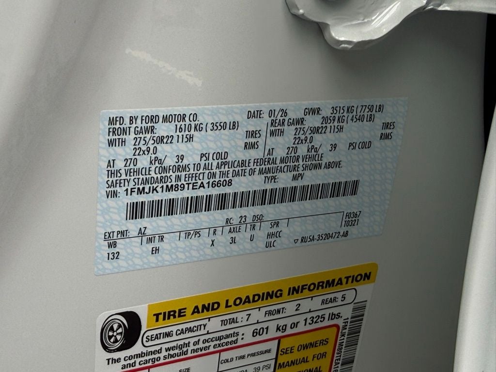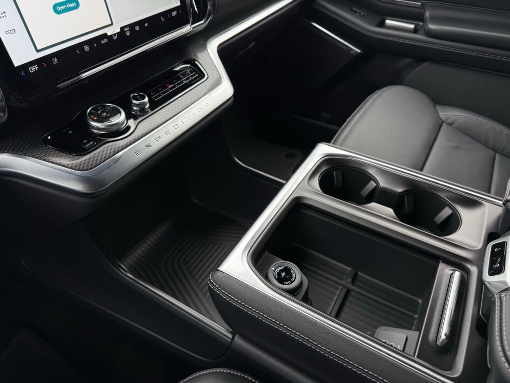 Equipment Group 600A Standard Package (2nd Row Power-Folding Captain's Chairs, 3.73 Axle Ratio, BlueCruise Equipped (90-Day Trial), Ford Digital Experience, Heated and Ventilated Leather Front Captain's Chairs, Radio: B&O Sound System by Bang and Olufsen, Wheels: 20 x 8.5 Ebony Bright Machined Aluminum, and Power Tilt/Telescopic Steering Wheel with Memory), Ford Connectivity Package (1-Year Included), Stealth Appearance Package (Black Belt Molding, Black Expedition Lettering on Hood, Black Headlamp Bezel with Ebony Trim Applique, Black Platinum Badge on Tailgate, Black Roof Rails, Carbon Black Front Bumper/Fascia, Rear Side Windows Laminated Glass, and Signature Grille Lighting), Expedition Max Platinum, 4WD, Black Onyx Leather, AM/FM radio: SiriusXM with 360L, Apple CarPlay/Android Auto, Auto High-beam Headlights, Automatic temperature control, Brake assist, Electronic Stability Control, Front Center Armrest, Front dual zone A/C, Heated door mirrors, Heated rear seats, Heated steering wheel, Illuminated entry, Intersection Assist, Memory seat, Navigation System, Power moonroof: Vista Roof, Rear air conditioning, Security system, Spoiler, 3rd row seats: split-bench, 4-Wheel Disc Brakes, ABS brakes, Air Conditioning, Alloy wheels, Auto-dimming door mirrors, Auto-dimming Rear-View mirror, Bumpers: body-color, Compass, Delay-off headlights, Driver door bin, Driver vanity mirror, Dual front impact airbags, Dual front side impact airbags, Emergency communication system: 911 Assist, Four wheel independent suspension, Front anti-roll bar, Front License Plate Bracket, Front reading lights, Garage door transmitter, Genuine wood dashboard insert, Genuine wood door panel insert, Leather steering wheel, Low tire pressure warning, Occupant sensing airbag, Outside temperature display, Overhead airbag, Overhead console, Panic alarm, Passenger door bin, Passenger vanity mirror, Power door mirrors, Power driver seat, Power passenger seat, Power steering, Power windows, Radio data system, Rain sensing wipers, Rear anti-roll bar, Rear reading lights, Rear window defroster, Rear window wiper, Reclining 3rd row seat, Remote keyless entry, Speed control, Speed-sensing steering, Speed-Sensitive Wipers, Split folding rear seat, Steering wheel memory, Steering wheel mounted audio controls, Tachometer, Telescoping steering wheel, Tilt steering wheel, Traction control, Trip computer, Turn signal indicator mirrors, Variably intermittent wipers, and Voltmeter.