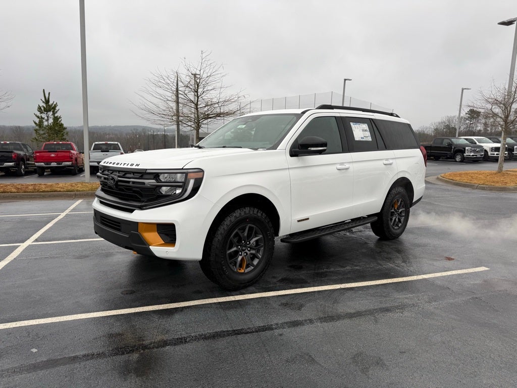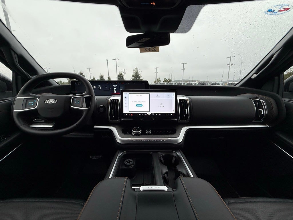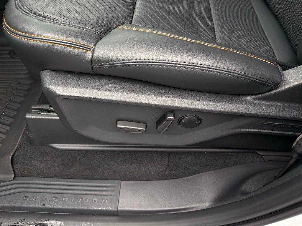 Equipment Group 501A (2nd Row Power-Folding Captain's Chairs, Digital Device Holder, Ford Digital Experience, and 3.73 Axle Ratio), Ford Connectivity Package (1-Year Included), Expedition Tremor, 4D Sport Utility, 4WD, Oxford White, Black Onyx/Electric Spice Leather, 10 Speakers, 4-Wheel Disc Brakes, Apple CarPlay/Android Auto, Brake assist, Electronic Stability Control, Exterior Parking Camera Rear, Four wheel independent suspension, Front dual zone A/C, Front fog lights, Heated door mirrors, Heated front seats, Heated steering wheel, Memory seat, Navigation System, Power moonroof: Vista Roof, Rear air conditioning, Reclining 3rd row seat, Security system, Spoiler, Steering wheel memory, Steering wheel mounted audio controls, Turn signal indicator mirrors, Ventilated front seats, 3rd row seats: split-bench, ABS brakes, Air Conditioning, Alloy wheels, Auto High-beam Headlights, Auto-dimming door mirrors, Auto-dimming Rear-View mirror, Automatic temperature control, Bumpers: body-color, Compass, Delay-off headlights, Driver door bin, Driver vanity mirror, Dual front impact airbags, Dual front side impact airbags, Emergency communication system: 911 Assist, Front anti-roll bar, Front Center Armrest, Front License Plate Bracket, Front reading lights, Fully automatic headlights, Garage door transmitter, Illuminated entry, Leather steering wheel, Low tire pressure warning, Occupant sensing airbag, Outside temperature display, Overhead airbag, Overhead console, Panic alarm, Passenger door bin, Passenger vanity mirror, Power door mirrors, Power driver seat, Power passenger seat, Power steering, Power windows, Radio data system, Rain sensing wipers, Rear anti-roll bar, Rear reading lights, Rear window defroster, Rear window wiper, Remote keyless entry, Speed control, Speed-sensing steering, Speed-Sensitive Wipers, Split folding rear seat, Tachometer, Telescoping steering wheel, Tilt steering wheel, Traction control, Trip computer, Variably intermittent wipers, and Voltmeter.