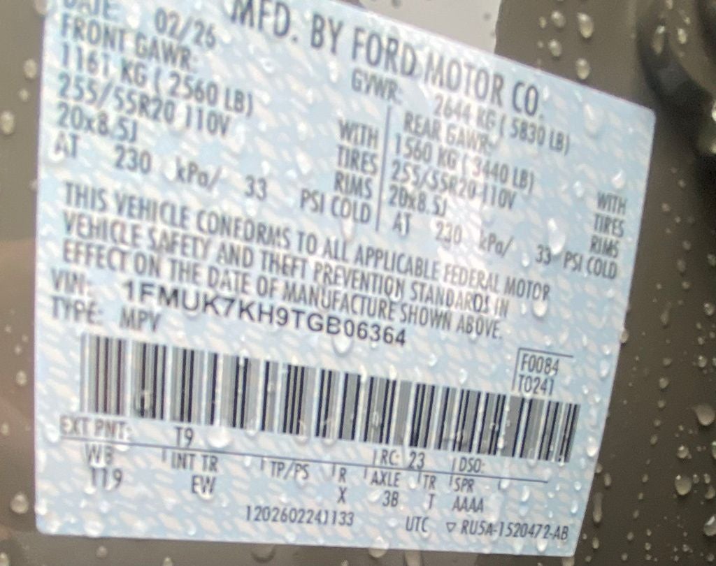 - Front Tire Size: P255/55VR20