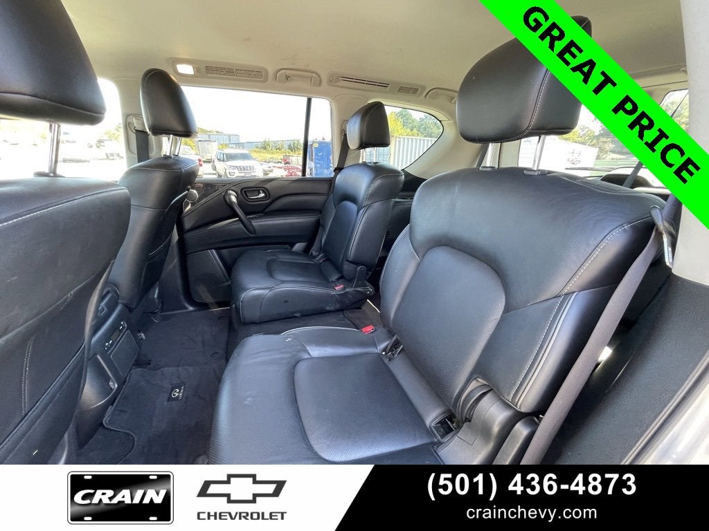 100 Hour Love It or Leave It Exchange Policy, 100 Year or 100,000 Mile Power-Train Warranty, *** Clean CARFAX ***, Leather, Heated Seats, Cruise Control, Steering Wheel Controls, Keyless Entry, Bluetooth®, MP3 Player, Fog Lights, Alloy Wheels, Premium Wheels, Parking Sensors, Lane Keep Assist, Forward Collision Alert, Premium Audio, BOSE Audio System, Backup / Rear View Camera, Class IV Tow Hitch, Navigation/GPS, Sunroof/Moonroof, USB / AUX Ports, SiriusXM, Remote Start, Apple CarPlay, Google Android Auto, Rear Cross Traffic Alert System, Wi-Fi HotSpot, Color Touch-Screen Display, QX80 LUXE, 4D Sport Utility, 5.6L V8, 7-Speed Automatic, RWD, Liquid Platinum, Graphite w/Leather-Appointed Seats, 13 Speakers, 2.937 Axle Ratio, 3rd row seats: split-bench, 4-Wheel Disc Brakes, ABS brakes, Air Conditioning, Alloy wheels, AM/FM radio: SiriusXM, Anti-whiplash front head restraints, Apple CarPlay/Android Auto, Auto High-beam Headlights, Auto tilt-away steering wheel, Auto-dimming door mirrors, Auto-dimming Rear-View mirror, Auto-leveling suspension, Automatic temperature control, Brake assist, Bumpers: body-color, CD player, Compass, Delay-off headlights, Driver door bin, Driver vanity mirror, Dual front impact airbags, Dual front side impact airbags, DVD-Audio, Electronic Stability Control, Emergency communication system: INFINITI Connection, Four wheel independent suspension, Front anti-roll bar, Front Bucket Seats, Front Center Armrest, Front dual zone A/C, Front fog lights, Front reading lights, Fully automatic headlights, Garage door transmitter: HomeLink, Heated door mirrors, Heated Front Bucket Seats, Heated front seats, Heated steering wheel, Illuminated entry, Leather Shift Knob, Leather steering wheel, Leather-Appointed Seats, Literature Kit, Low tire pressure warning, Memory seat, Navigation System, Navigation system: INFINITI InTouch Navigation, Occupant sensing airbag, Outside temperature display, Overhead airbag, Overhead console, Panic alarm, Passenger door bin, Passenger vanity mirror, Power door mirrors, Power driver seat, Power Liftgate, Power moonroof, Power passenger seat, Power steering, Power windows, Radio data system, Radio: Bose Audio System w/13 Speakers, Rain sensing wipers, Rear air conditioning, Rear anti-roll bar, Rear audio controls, Rear reading lights, Rear seat center armrest, Rear window defroster, Rear window wiper, Reclining 3rd row seat, Remote keyless entry, Security system, Speed control, Speed-sensing steering, Split folding rear seat, Spoiler, Steering wheel memory, Steering wheel mounted audio controls, Tachometer, Telescoping steering wheel, Tilt steering wheel, Traction control, Trip computer, Turn signal indicator mirrors, Variably intermittent wipers, Voltmeter, Wheels: 20 x 8.0 Aluminum-Alloy.