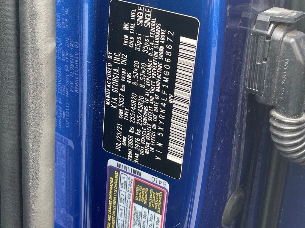 Sorento SX-Prestige, 4D Sport Utility, 2.5L I4 DGI Turbocharged DOHC 16V LEV3-ULEV70 281hp, 8-Speed DCT, FWD, Sapphire Blue, Gray w/Perforated Genuine Leather Seat Trim, 12 Speakers, 3.316 Axle Ratio, 3rd row seats: split-bench, 4-Wheel Disc Brakes, ABS brakes, AM/FM radio: SiriusXM, Apple CarPlay & Android Auto, Auto Dimming Mirror w/HomeLink (Plug-N-Play), Auto High-beam Headlights, Auto-dimming Rear-View mirror, Automatic temperature control, Brake assist, Bumpers: body-color, Cargo Net, Delay-off headlights, Driver door bin, Driver vanity mirror, Electronic Stability Control, Emergency communication system: UVO link, Four wheel independent suspension, Front Bucket Seats, Front Center Armrest, Front dual zone A/C, Front fog lights, Front reading lights, Fully automatic headlights, Heated & Ventilated Front Bucket Seats, Heated door mirrors, Heated front seats, Heated steering wheel, Illuminated entry, Leather steering wheel, Low tire pressure warning, Navigation System, Outside temperature display, Overhead console, Panic alarm, Passenger door bin, Passenger vanity mirror, Perforated Genuine Leather Seat Trim, Power door mirrors, Power driver seat, Power Liftgate, Power moonroof, Power passenger seat, Power steering, Power windows, Radio data system, Radio: AM/FM Bose Audio System w/Navigation, Rear air conditioning, Rear reading lights, Rear window defroster, Rear window wiper, Remote keyless entry, Roof rack: rails only, Smart Key w/ Push Button and Remote Start, Speed control, Speed-sensing steering, Split folding rear seat, Spoiler, Steering wheel mounted audio controls, Tachometer, Telescoping steering wheel, Tilt steering wheel, Trip computer, Turn signal indicator mirrors, Variably intermittent wipers, Ventilated front seats, Wheels: 20 Gloss Black Alloy.