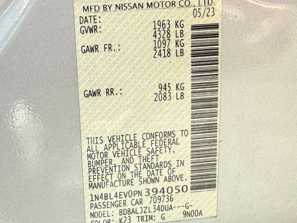 2023 Nissan Altima FWD 2.5L 4-Cylinder DOHC 16V CVT with Xtronic Altima 2.5 SL, 4D Sedan, 2.5L 4-Cylinder DOHC 16V, CVT with Xtronic, FWD, Brilliant Silver Metallic, Charcoal Leather, 19 Unique Alloy Wheels, 4-Wheel Disc Brakes, 9 Speakers, ABS brakes, Air Conditioning, Alloy wheels, AM/FM radio: SiriusXM, Auto High-beam Headlights, Automatic temperature control, Blind Spot Warning, Brake assist, Bumpers: body-color, Compass, Delay-off headlights, Driver door bin, Driver vanity mirror, Dual front impact airbags, Dual front side impact airbags, Electronic Stability Control, Emergency communication system: NissanConnect Services, Floor Mats/Trunk Mat/Hideaway Net, Four wheel independent suspension, Front anti-roll bar, Front Bucket Seats, Front Center Armrest, Front dual zone A/C, Front reading lights, Fully automatic headlights, Heated door mirrors, Heated Front Bucket Seats, Heated front seats, Heated steering wheel, Illuminated entry, Knee airbag, Leather Shift Knob, Leather-Appointed Seat Trim, Low tire pressure warning, Navigation System, Occupant sensing airbag, Outside temperature display, Overhead airbag, Overhead console, Panic alarm, Passenger door bin, Passenger vanity mirror, Power door mirrors, Power driver seat, Power moonroof, Power passenger seat, Power steering, Power windows, Radio data system, Radio: AM/FM w/Bose Premium Sound System, Rear anti-roll bar, Rear Parking Sensors, Rear reading lights, Rear seat center armrest, Rear side impact airbag, Rear window defroster, Remote keyless entry, Security system, Speed control, Speed-sensing steering, Speed-Sensitive Wipers, Split folding rear seat, Steering wheel mounted audio controls, Tachometer, Tech Spec Change, Telescoping steering wheel, Tilt steering wheel, Traction control, Trip computer, Turn signal indicator mirrors, Variably intermittent wipers. CARFAX One-Owner. Clean CARFAX.