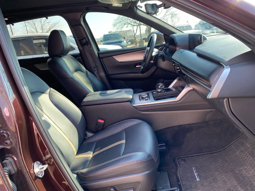 2024 Mazda CX-90 AWD I6 Turbo 8-Speed Automatic CX-90 3.3 Turbo S Premium HEADS UP DISPLAY, 4D Sport Utility, I6 Turbo, 8-Speed Automatic, AWD, Red, Black Leather, 12 Speakers, 3.692 Axle Ratio, 3rd row seats: bench, 4-Wheel Disc Brakes, ABS brakes, Air Conditioning, Alloy wheels, AM/FM radio: SiriusXM, Artisan Red Premium Paint Charge, Auto High-beam Headlights, Auto-dimming door mirrors, Auto-dimming Rear-View mirror, Automatic temperature control, Brake assist, Bumpers: body-color, Compass, Delay-off headlights, Driver door bin, Driver vanity mirror, Dual front impact airbags, Dual front side impact airbags, E911 Automatic Emergency Notification, Electronic Stability Control, Emergency communication system: MAZDA CONNECT, Four wheel independent suspension, Front anti-roll bar, Front Bucket Seats, Front Center Armrest w/Storage, Front dual zone A/C, Front reading lights, Fully automatic headlights, Garage door transmitter: HomeLink, Heads-Up Display, Heated door mirrors, Heated Front Bucket Seats, Heated front seats, Heated steering wheel, Illuminated entry, Infotainment System Voice Command, Knee airbag, Leather Shift Knob, Leather steering wheel, Low tire pressure warning, Mazda Connected Services, Mazda Navigation System, Memory seat, Nappa Leather Seat Trim, Navigation system: MAZDA CONNECT, Occupant sensing airbag, Outside temperature display, Overhead airbag, Overhead console, Pandora Internet Radio Integration, Panic alarm, Passenger door bin, Passenger vanity mirror, Power door mirrors, Power driver seat, Power Liftgate, Power moonroof, Power passenger seat, Power steering, Power windows, Radio Broadcast Data System Program Information, Radio data system, Radio: AM/FM w/Bose Audio Sound System, Rain sensing wipers, Rear air conditioning, Rear anti-roll bar, Rear reading lights, Rear window defroster, Remote keyless entry, Security system, SMS Text Msg Audio Delivery & Reply, Speed control, Speed-sensing steering, Split folding rear seat, Spoiler, Steering wheel memory, Steering wheel mounted audio controls, Tachometer, Telescoping steering wheel, Tilt steering wheel, Traction control, Trip computer, Turn signal indicator mirrors, Variably intermittent wipers, Wheels: 21 x 9.5J Aluminum Alloy.
