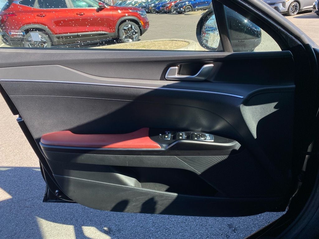 KIA Certified Eligible Certified, 4-Wheel Disc Brakes, 6 Speakers, ABS brakes, Air Conditioning, Alloy wheels, AM/FM radio: SiriusXM, Apple CarPlay & Android Auto, Auto High-beam Headlights, Automatic temperature control, Brake assist, Bumpers: body-color, Cargo Net, Carpeted Floor Mats, Cloth/SynTex Seat Trim, Delay-off headlights, Driver door bin, Driver vanity mirror, Dual front impact airbags, Dual front side impact airbags, Electronic Stability Control, Forward Collision Avoidance-Assist, Four wheel independent suspension, Front anti-roll bar, Front Bucket Seats, Front Center Armrest, Front dual zone A/C, Front fog lights, Front reading lights, Fully automatic headlights, GT-Line Premium Package, GT-Line Red Interior Package, Heated door mirrors, Heated Front Bucket Seats, Heated front seats, Highway Driving Assist, Illuminated entry, Knee airbag, Leather steering wheel, LED Projection Headlamps, LED Trunk Light, Low tire pressure warning, Navigation System, Occupant sensing airbag, Outside temperature display, Overhead airbag, Overhead console, Panic alarm, Passenger door bin, Passenger vanity mirror, Power door mirrors, Power driver seat, Power steering, Power windows, Radio data system, Radio: AM/FM/MP3 Audio System, Rear anti-roll bar, Rear Bumper Applique, Rear seat center armrest, Rear side impact airbag, Rear window defroster, Remote keyless entry, Security system, Smart Cruise Control w/Stop & Go, Speed control, Speed-sensing steering, Split folding rear seat, Spoiler, Sport steering wheel, Steering wheel mounted audio controls, Tachometer, Telescoping steering wheel, Tilt steering wheel, Traction control, Trip computer, Trunk Cargo Management System, Turn signal indicator mirrors, Variably intermittent wipers, Wheel Locks, Wheels: 18 Gloss Black Machined Finish Alloy.