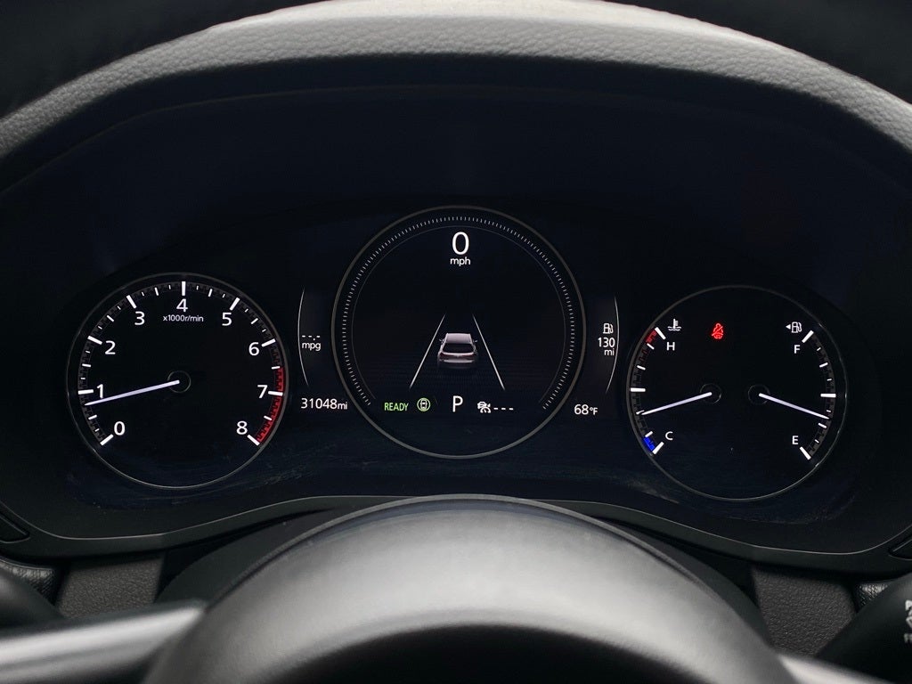 3.692 Axle Ratio, 3rd row seats: bench, 4-Wheel Disc Brakes, 8 Speakers, ABS brakes, Air Conditioning, Alloy wheels, AM/FM radio, AppLink/Apple CarPlay and Android Auto, Auto High-beam Headlights, Automatic temperature control, Brake assist, Bumpers: body-color, Compass, Delay-off headlights, Driver door bin, Driver vanity mirror, Dual front impact airbags, Dual front side impact airbags, E911 Automatic Emergency Notification, Electronic Stability Control, Emergency communication system: MAZDA CONNECT, Exterior Parking Camera Rear, Four wheel independent suspension, Front anti-roll bar, Front Bucket Seats, Front Center Armrest w/Storage, Front dual zone A/C, Front reading lights, Fully automatic headlights, Heated door mirrors, Illuminated entry, Infotainment System Voice Command, Knee airbag, Leather Shift Knob, Leather steering wheel, Leatherette Seat Trim, Low tire pressure warning, Mazda Connected Services, Occupant sensing airbag, Outside temperature display, Overhead airbag, Overhead console, Pandora Internet Radio Integration, Panic alarm, Passenger door bin, Passenger vanity mirror, Power door mirrors, Power driver seat, Power Liftgate, Power steering, Power windows, Radio Broadcast Data System Program Information, Radio data system, Radio: AM/FM Sound System, Rain sensing wipers, Rear air conditioning, Rear anti-roll bar, Rear reading lights, Rear seat center armrest, Rear window defroster, Rear window wiper, Remote keyless entry, SMS Text Msg Audio Delivery & Reply, Speed control, Speed-sensing steering, Split folding rear seat, Spoiler, Steering wheel mounted audio controls, Tachometer, Telescoping steering wheel, Tilt steering wheel, Traction control, Trip computer, Turn signal indicator mirrors, Variably intermittent wipers, Wheels: 19 x 8.5J Aluminum Alloy.