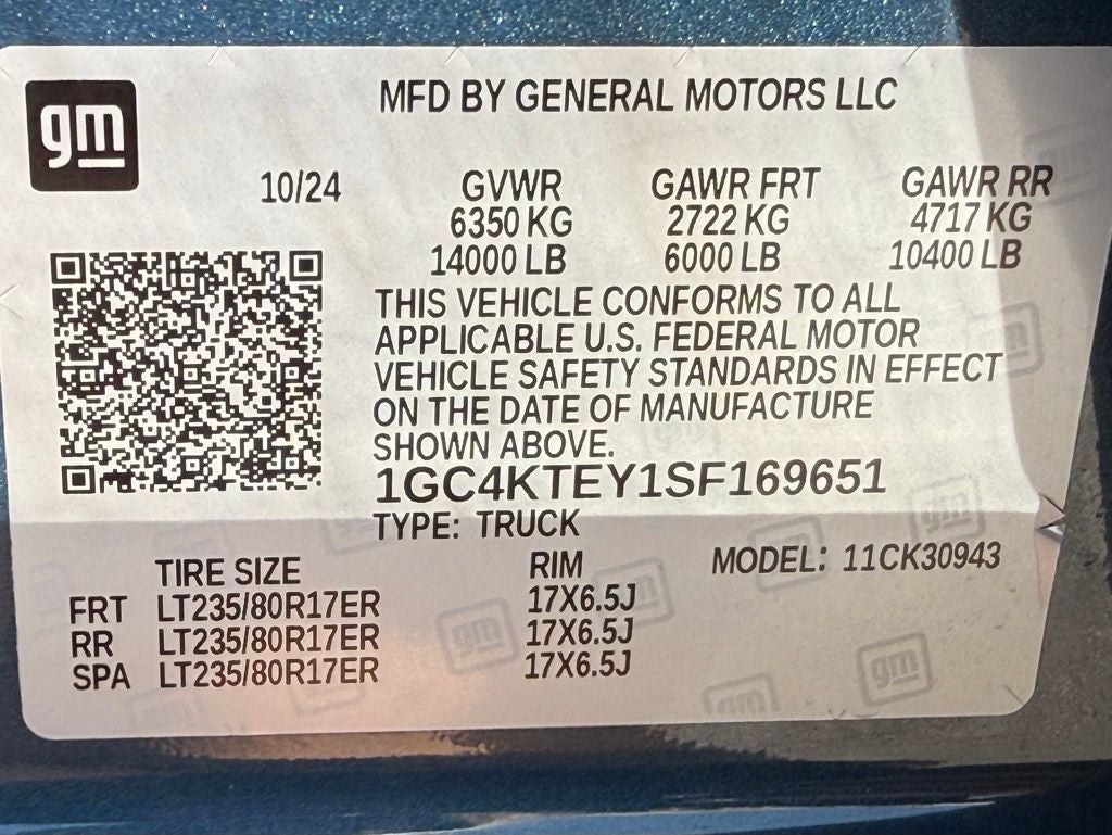 2025 Chevrolet Silverado 3500HD 4WD Duramax 6.6L V8 Turbodiesel 10-Speed Automatic Silverado 3500HD LT Lifted Big Wheels & Tires, 4D Crew Cab, Duramax 6.6L V8 Turbodiesel, 10-Speed Automatic, 4WD, Lakeshore Blue, Black Cloth, 10-Way Power Driver Seat Adjuster w/Lumbar, 120-Volt Bed Mounted Power Outlet, 170 Amp Alternator, 2 Charge/Data USB Ports Inside Center Console, 2-Speed Active Transfer Case, 2-Speed Electronic Shift Transfer Case, 220 Amp Alternator, 4-Way Manual Driver Seat Adjuster, 4-Way Manual Passenger Seat Adjuster, 6 Speakers, 6-Speaker Audio System Feature, 6 Rectangular Chromed Tubular Assist Steps (LPO), ABS brakes, Air Conditioning, AM/FM radio: SiriusXM with 360L, Apple CarPlay/Android Auto, Auto High-beam Headlights, Auto-Dimming Inside Rear-View Mirror, Bed View Camera w/2 Trailer Camera Provisions, Black Mirror Caps, Bluetooth® For Phone, Brake assist, Bumpers: chrome, Chevrolet Connected Access Capable, Chevytec Spray-On Black Bedliner, Cloth Rear Seat w/Storage Package, Cloth Seat Trim, Color-Keyed Carpeting Floor Covering, Compass, Compass Located In Instrument Cluster, Convenience Package, Convenience Package II, Deep-Tinted Glass, Delay-off headlights, Driver door bin, Driver vanity mirror, Dual front impact airbags, Dual front side impact airbags, Dual-Zone Automatic Climate Control, Durabed Pickup Bed, Electric Rear-Window Defogger, Electronic Stability Control, Engine Block Heater, Exhaust Brake, EZ Lift Power Lock & Release Tailgate, Floor-Mounted Center Console, Front 40/20/40 Split-Bench Seats w/Lockable Storage, Front anti-roll bar, Front Bucket Seats, Front LED Fog Lamps, Front License Plate Kit, Front reading lights, Front Rubberized Vinyl Floor Mats, Front wheel independent suspension, Fully automatic headlights, Gooseneck/5th Wheel Prep Package, Halogen Reflector Headlamps, HD Rear Vision Camera, HD Surround Vision, Heat Package, Heated door mirrors, Heated Driver & Front Outboard Passenger Seats, Heated Steering Wheel, Heavy-Duty 80 Amp-Hr Battery, Hitch Guidance w/Hitch View, Hitch Package (LPO), Illuminated entry, In-Vehicle Trailering App System, Keyless Open & Start, LED Cargo Area Lighting, Low tire pressure warning, Manual Tilt-Wheel/Telescoping Steering Column, Occupant sensing airbag, OnStar Services Capable, Outside Power-Adjustable Mirrors, Outside temperature display, Overhead airbag, Overhead console, Panic alarm, Passenger vanity mirror, Perimeter Lighting, Power Door Locks, Power Front Windows w/Driver Express Up/Down, Power Front Windows w/Passenger Express Down, Power Rear Windows w/Express Down, Power Sliding Rear Window w/Defogger, Power steering, Power Tailgate, Power windows, Power-Adjustable Outside Mirrors, Preferred Equipment Group 1LT, Premium audio system: Chevrolet Infotainment 3 Premium, Push Button Start, Radio: Chevrolet Infotainment 3 Premium System, Rear 60/40 Folding Bench Seat (Folds Up), Rear Cross Traffic Alert, Rear reading lights, Rear Rubberized-Vinyl Floor Mats, Rear step bumper, Remote Start Package, Remote Vehicle Starter System, Safety Package, SiriusXM w/360L Trial Subscription, Speed control, Standard Tailgate, Steering Wheel Audio Controls, Steering Wheel Mounted Electronic Cruise Control, Suspension Package, Tachometer, Texas Edition, Tilt steering wheel, Traction control, Trailer Camera Provisions, Trailer Side Blind Zone Alert, Trip computer, Turn signal indicator mirrors, Ultrasonic Front & Rear Park Assist, Unauthorized Entry Theft-Deterrent System, Universal Home Remote, Voltmeter, Wi-Fi Hotspot Capable, Winter Grille Cover, Wireless Charging, Wrapped Steering Wheel. CARFAX One-Owner. Clean CARFAX.