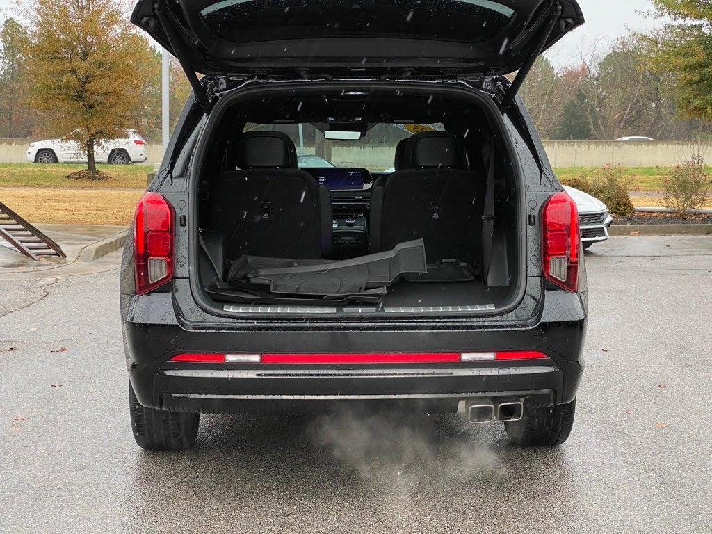 Palisade Calligraphy Night Edition AWD BLACK ON BLACK, 4D Sport Utility, V6, 8-Speed Automatic with SHIFTRONIC, AWD, Abyss Black, Black Leather, 12 Speakers, 3rd row seats: split-bench, 4-Wheel Disc Brakes, ABS brakes, Air Conditioning, All-Season Fitted Liners, Alloy wheels, AM/FM radio: SiriusXM, Apple CarPlay & Android Auto, Auto High-beam Headlights, Auto-dimming door mirrors, Auto-dimming Rear-View mirror, Auto-leveling suspension, Automatic temperature control, Brake assist, Bumpers: body-color, Cargo Net, Carpeted Floor Mats, Compass, Delay-off headlights, Driver door bin, Driver vanity mirror, Dual front impact airbags, Dual front side impact airbags, Electronic Stability Control, Emergency communication system, Exterior Parking Camera Rear, First Aid Kit, Four wheel independent suspension, Front anti-roll bar, Front Bucket Seats, Front Center Armrest, Front dual zone A/C, Front reading lights, Fully automatic headlights, Garage door transmitter: HomeLink, harman/kardon® Speakers, Heads-Up Display, Heated & Ventilated Front Bucket Seats, Heated door mirrors, Heated front seats, Heated rear seats, Heated steering wheel, Illuminated entry, Knee airbag, Leather steering wheel, Low tire pressure warning, Memory seat, Microfiber Suede Seat Trim, Navigation System, Occupant sensing airbag, Option Group 01, Outside temperature display, Overhead airbag, Overhead console, Panic alarm, Passenger door bin, Passenger vanity mirror, Power door mirrors, Power driver seat, Power Liftgate, Power moonroof, Power passenger seat, Power steering, Power windows, Radio data system, Radio: AM/FM/MP3 Premium Audio System, Rain sensing wipers, Rear air conditioning, Rear anti-roll bar, Rear audio controls, Rear reading lights, Rear side impact airbag, Rear window defroster, Rear window wiper, Reclining 3rd row seat, Remote keyless entry, Roadside Assistance Kit, Roof rack, Security system, Speed control, Speed-sensing steering, Split folding rear seat, Spoiler, Steering wheel mounted audio controls, Tachometer, Telescoping steering wheel, Tilt steering wheel, Traction control, Trip computer, Turn signal indicator mirrors, Variably intermittent wipers, Ventilated front seats, Ventilated rear seats, Wheels: 20 x 7.5J Black Liquid Paint Alloy.