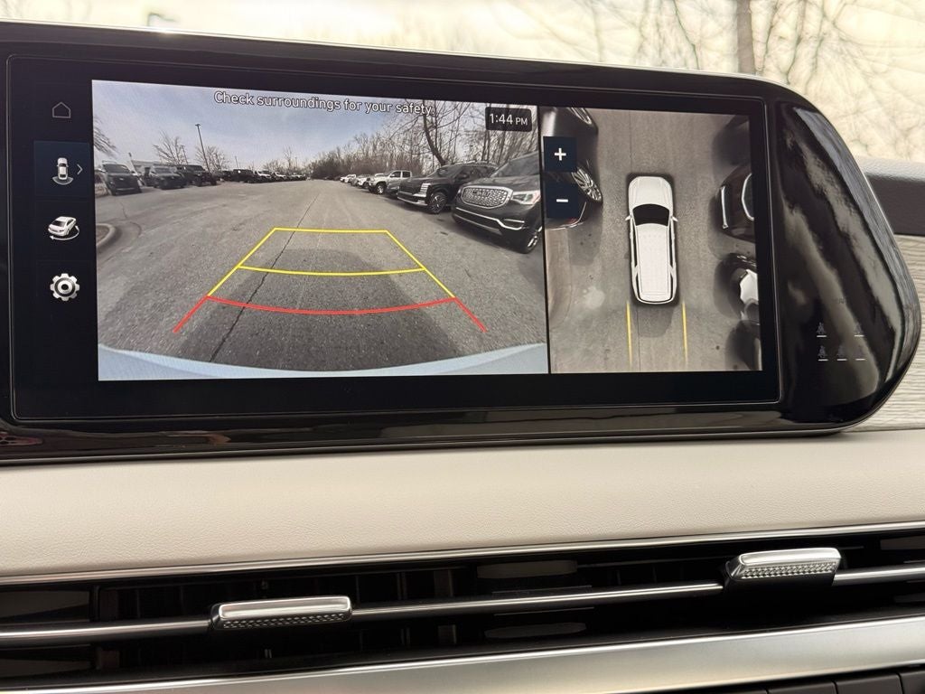 2025 Hyundai Palisade AWD V6 8-Speed Automatic with SHIFTRONIC Palisade Calligraphy, 4D Sport Utility, V6, 8-Speed Automatic with SHIFTRONIC, AWD, White, Beige/Navy Leather, 12 Speakers, 3rd row seats: split-bench, 4-Wheel Disc Brakes, ABS brakes, Air Conditioning, Alloy wheels, AM/FM radio: SiriusXM, Apple CarPlay & Android Auto, Auto High-beam Headlights, Auto-dimming door mirrors, Auto-dimming Rear-View mirror, Auto-leveling suspension, Automatic temperature control, Brake assist, Bumpers: body-color, Carpeted Floor Mats, Compass, Delay-off headlights, Driver door bin, Driver vanity mirror, Dual front impact airbags, Dual front side impact airbags, Electronic Stability Control, Emergency communication system, Exterior Parking Camera Rear, Four wheel independent suspension, Front anti-roll bar, Front Bucket Seats, Front Center Armrest, Front dual zone A/C, Front reading lights, Fully automatic headlights, Garage door transmitter: HomeLink, harman/kardon® Speakers, Heads-Up Display, Heated & Ventilated Front Bucket Seats, Heated door mirrors, Heated front seats, Heated rear seats, Heated steering wheel, Illuminated entry, Knee airbag, Low tire pressure warning, Memory seat, Navigation System, Occupant sensing airbag, Option Group 01, Outside temperature display, Overhead airbag, Overhead console, Panic alarm, Passenger door bin, Passenger vanity mirror, Power door mirrors, Power driver seat, Power Liftgate, Power moonroof, Power passenger seat, Power steering, Power windows, Premium Nappa Leather Seat Trim, Radio data system, Radio: AM/FM/MP3 Premium Audio System, Rain sensing wipers, Rear air conditioning, Rear anti-roll bar, Rear audio controls, Rear reading lights, Rear side impact airbag, Rear window defroster, Rear window wiper, Reclining 3rd row seat, Remote keyless entry, Security system, Speed control, Speed-sensing steering, Split folding rear seat, Spoiler, Steering wheel mounted audio controls, Tachometer, Telescoping steering wheel, Tilt steering wheel, Traction control, Trip computer, Turn signal indicator mirrors, Variably intermittent wipers, Ventilated front seats, Ventilated rear seats, Wheels: 20 x 7.5J Calligraphy Exclusive Alloy. CARFAX One-Owner.
