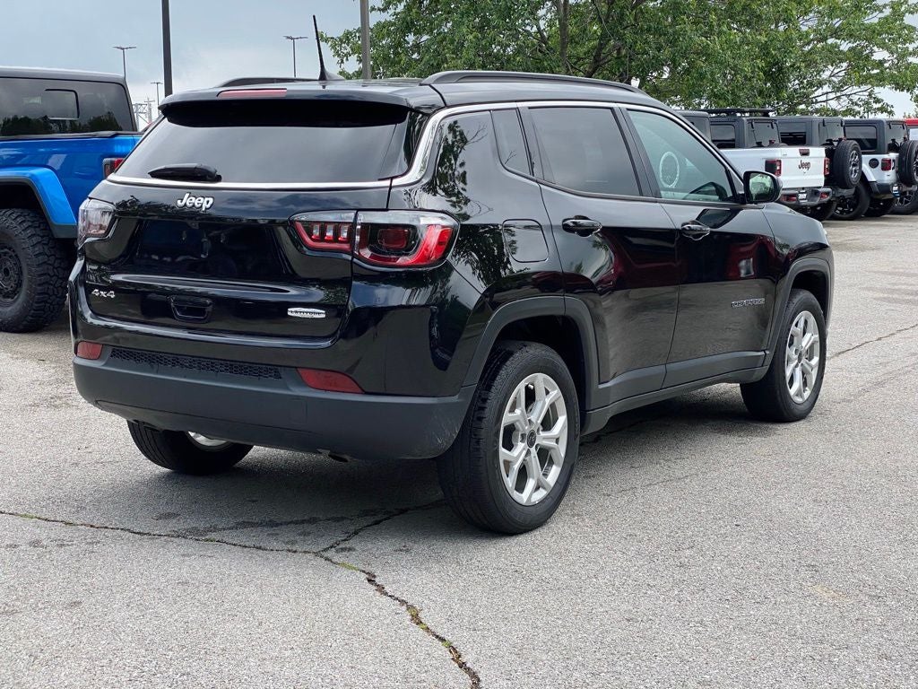 2025 Jeep Compass 4WD 2.0L I4 DOHC 8-Speed Automatic Compass Latitude 1 OWNER CLEANC ARFAX, 4D Sport Utility, 2.0L I4 DOHC, Diamond Black Crystal Pearlcoat, Black Cloth, 2nd Row USB Type A/C Charge Only, 4-Wheel Disc Brakes, 6 Speakers, ABS brakes, Air Conditioning, Air Conditioning ATC w/Dual Zone Control, All-Season Floor Mats, AM/FM radio: SiriusXM, Auto-Dimming Rear-View Mirror, Convenience Group, Dual front impact airbags, Dual front side impact airbags, Emergency communication system: Jeep Connect, Foot Activated Open 'N Go Liftgate, Four wheel independent suspension, Front anti-roll bar, Humidity Sensor, Knee airbag, Low tire pressure warning, Occupant sensing airbag, Overhead airbag, Power 2-Way Driver Lumbar Adjust, Power Adjust 8-Way Driver Seat, Power Liftgate, Power steering, Power windows, Premium audio system: UConnect 5, Quick Order Package 29J, Radio: Uconnect 5 w/8.4 Display, Rear anti-roll bar, Rear window defroster, Remote keyless entry, Reversible Carpet/Vinyl Cargo Mat, Sliding Sun Visors w/Illuminated Mirrors, Steering wheel mounted audio controls, Traction control, Windshield Wiper De-Icer. CARFAX One-Owner. Clean CARFAX.