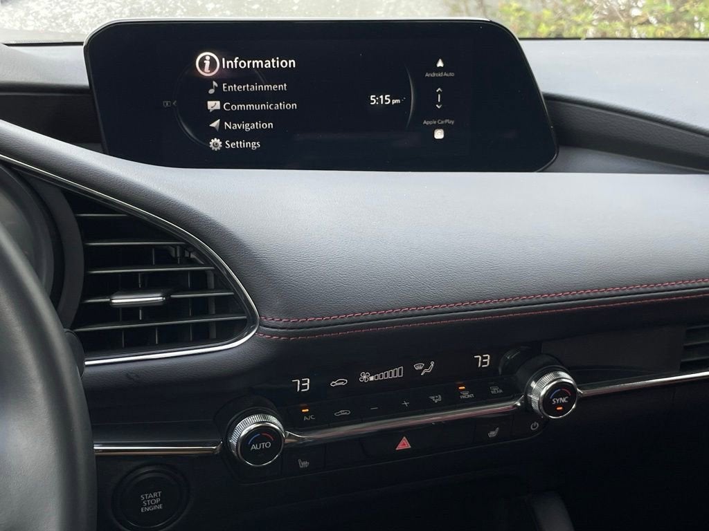 Step inside this Mazda3 and you'll be greeted by a cabin that exudes sophistication and comfort. The leather-wrapped steering wheel and shift knob provide a premium feel, while the heated front sport bucket seats ensure you and your passengers enjoy a relaxing ride, no matter the weather. The MAZDA CONNECT Infotainment System, with its intuitive controls and seamless connectivity, keeps you entertained and connected on the go.