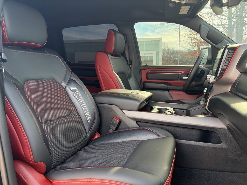 1500 Rebel CLEAN CARFAX 33 GALLON TANK, 4D Crew Cab, 3.0L I6, 8-Speed Automatic, 4WD, Diamond Black Crystal Pearlcoat, Black Leather, 10 Speakers, 3.92 Rear Axle Ratio, 33 Gallon Fuel Tank, 4 Way Front Headrests, 4-Wheel Disc Brakes, 4G LTE Wi-Fi Hot Spot, ABS brakes, Air Conditioning, Alloy wheels, AM/FM radio: SiriusXM with 360L, Apple CarPlay, Apple CarPlay/Android Auto, Auto High-beam Headlights, Auto Power-Folding Mirrors, Auto-Dimming Exterior Driver Mirror, Auto-dimming Rear-View mirror, Automatic temperature control, Black Premium Power Mirrors, Brake assist, Bucket Seats, Cloth/Vinyl Bucket Seats, Compass, Connected Travel & Traffic Services, Connectivity - US/Canada, Convex Wide-Angle Exterior Mirror Insert, Delay-off headlights, Driver door bin, Driver vanity mirror, Dual front impact airbags, Dual front side impact airbags, Electronic Stability Control, Exterior Mirrors Courtesy Lamps, Exterior Mirrors w/Heating Element, Exterior Mirrors w/Supplemental Signals, Front anti-roll bar, Front Bucket Seats, Front Center Armrest w/Storage, Front dual zone A/C, Front fog lights, Front reading lights, Front Seat Back Map Pockets, Front wheel independent suspension, Full Length Upgraded Floor Console, Fully automatic headlights, Garage door transmitter, Google Android Auto, GPS Antenna Input, GPS Navigation, Heated door mirrors, Heated front seats, Heated steering wheel, Illuminated entry, Integrated Voice Command w/Bluetooth®, Leather steering wheel, Low tire pressure warning, Manual Folding Exterior Mirrors, Navigation System, Occupant sensing airbag, Outside temperature display, Overhead airbag, Overhead console, Panic alarm, ParkView Rear Back-Up Camera, Passenger door bin, Passenger vanity mirror, Power Adjust 8-Way Driver Seat, Power Adjustable Pedals, Power door mirrors, Power driver seat, Power steering, Power Tailgate, Power windows, Quick Order Package 21W Rebel, Radio data system, Radio: Uconnect 5 Nav w/12.0 Display, Rear 60/40 Folding Seat, Rear anti-roll bar, Rear seat center armrest, Rear step bumper, Rear Window Defroster, Rebel Level 1 Equipment Group, Remote keyless entry, Remote Tailgate Release, SiriusXM w/360L, Speed control, Split folding rear seat, Steering wheel mounted audio controls, Tachometer, Telescoping steering wheel, Tilt steering wheel, Traction control, Trailer Brake Control, Trip computer, USB Host Flip, Variably intermittent wipers, Voltmeter, Wheels: 18 x 8.0 Painted Mid-Gloss Black, Wireless Charging Pad.